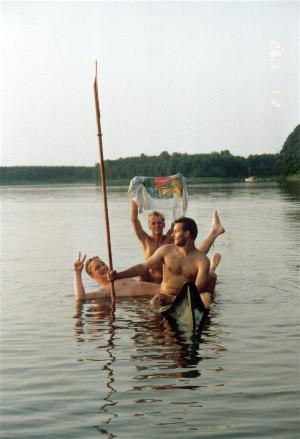 Polen, genauer die Masuren war das Ziel. Kanufahren und Männerurlaub waren angesagt. Also zogen wir mit einem T2 Bulli von Dülmen Richtung Berlin und sammelten dort erst mal unsere alten Freunde Heiko und Lines auf.